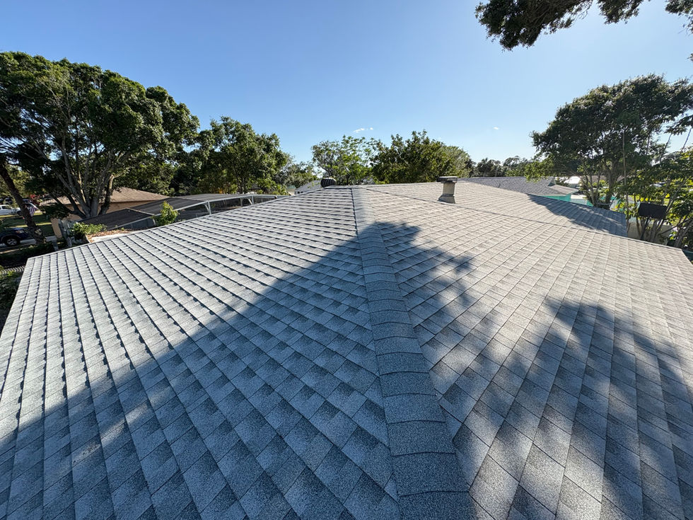 Here we ripped off the old shingles and re-nailed the deck to code. We installed full peel-n-stick underlayment for extra protection and installed the shingles over top.